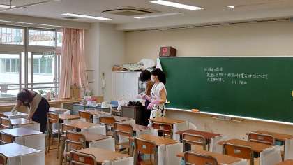 PTAの方々の消毒ボランティアがはじまり、ひと月が経とうとしています。継続していただき、ありがとうございます。普通教室での消毒もはじまり、教職員一同、感謝しております。