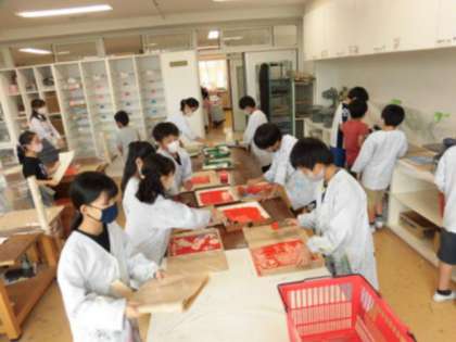 「わー!できた!」 「達成感〜!」 「みてみて!よく刷れた!」