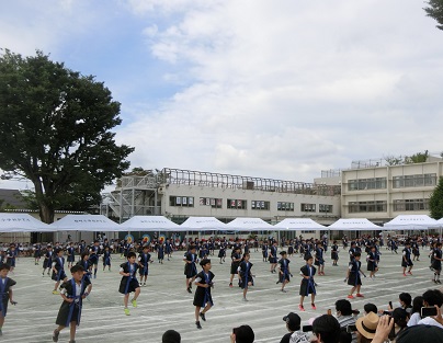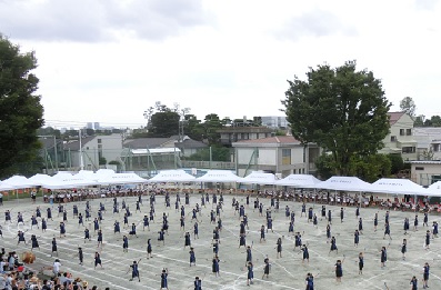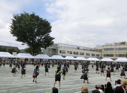 鳴子の音がリズミカルで小気味よく、3年生一人一人が元気いっぱい跳ね踊っていました。衣装に自分でデザインした「70」の文字も躍動していました。とても素敵なダンスでした。