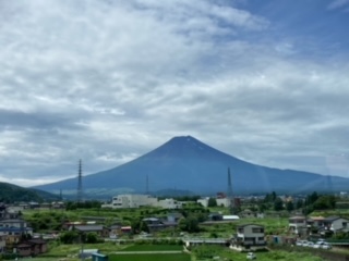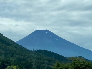 富士山が見えました。子供たちも大喜びです。出発した時は雨が落ちていたのですが、薄日もさしてきました。?