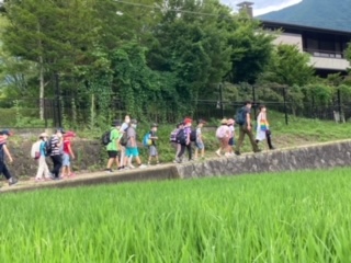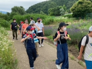 学園の近くにある大石公園に出かけました。道中には畑や田んぼなどがあり、ブルーベリーや稲などたくさんのものを見ることができました。