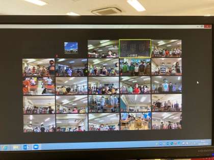 1時間目に始業式をオンラインにより実施しました。
