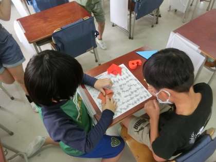 今日は朝から雨です。休み時間も外で遊べませんでしたが、折り紙をしたり、自由研究の作品を見たり、タブレットを使ったりと、みんな工夫して過ごしていました。