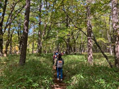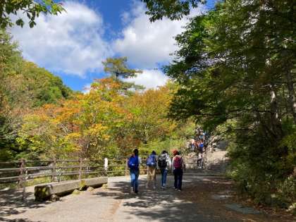 戦場ヶ原に向かって進みます。少しずつ紅葉しています。?