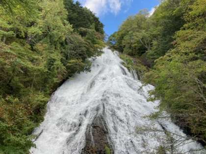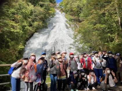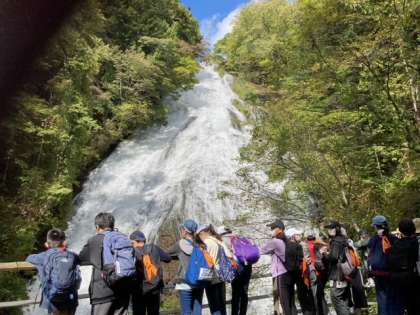 湯滝に着きました。華厳の滝とはまた違って、目の前に迫る滝のすごさにみんな釘付けです。ずっと見ていても飽きません。