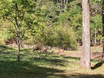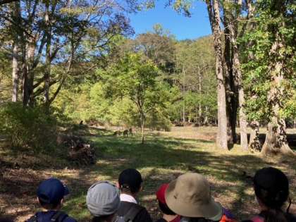 湯の湖湖畔を歩いていると野生の鹿に出会いました。まさかの出会いに、子供たちも驚くとともに喜んでいました。