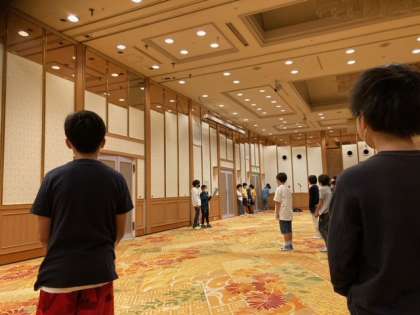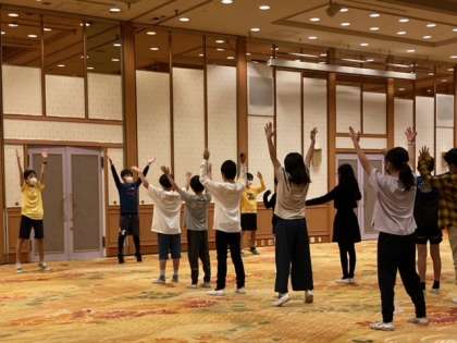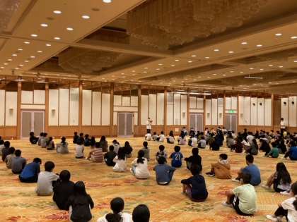 昨晩はハイキングの疲れか子供たちは早く寝ていました。今朝も時間までぐっすりでした。みんなでラジオ体操をして寝ている体を起こしました。