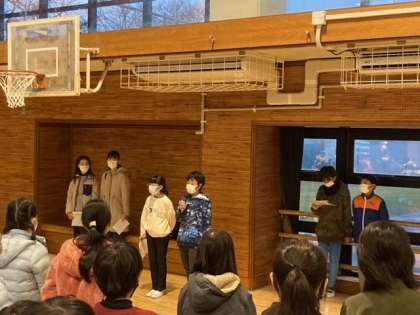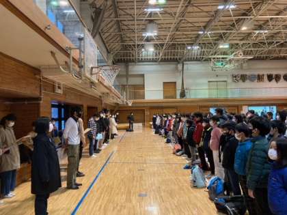体育館で出発式を行いました。司会、代表の言葉等しっかりしていて気持ちがよいです。