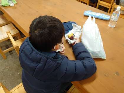 熱々、ほかほかの焼きいもができました。おいしくいただいています。はやめのおやつとなりました。自分で焼いた焼きいもは格別ですね。いい体験ができました。