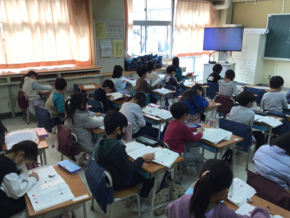 算数では、「大きなかず」の学習を進めています。100より大きな数について学級全体で考えています。授業では友達の意見に「いいと思います!」や、「同じです!」、「付け足しがあります。」と反応し、話合いが活発になってきました。