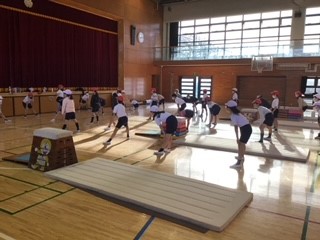 跳び箱運動だけではありませんが、児童の実態に合わせて場を設定し、少しずつできることを増やしながら、正しくできるようにしています。