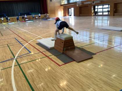 3年生で開脚跳びができるようになった児童や、初めての台上前転に挑戦する児童など、目標をもって意欲的に行うことができました。