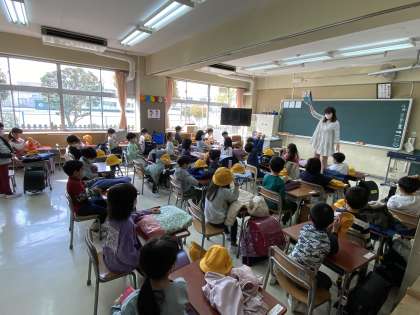 1年生は黄色い帽子をかぶって、ドキドキしながら登校です。
