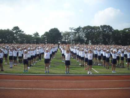 区内21校、2000名を越える6年生が集まり、児童の選択種目、全員の大なわとび等の競技がありました。