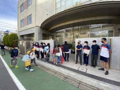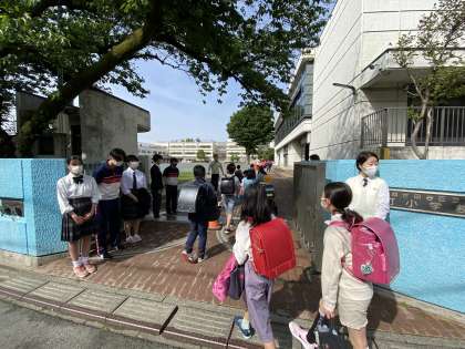 お兄さん、お姉さんたちの元気なあいさつに子どもたちも元気よくあいさつを返していました。