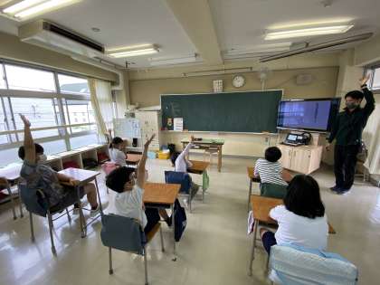 クイズ形式で楽しく学んだ後は、一人ひとり視写の時間です。みんな真剣に書いています。素晴らしい集中力でした。