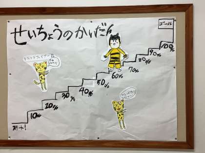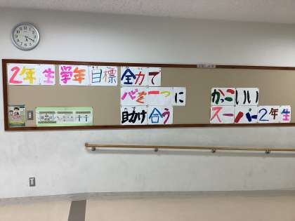 運動会に向けて、廊下の掲示も気合が入っています。2年生の演技、かけっこにぜひご期待ください!