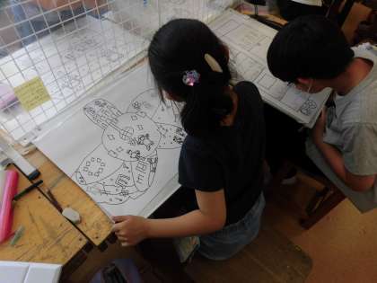 下書きの線をペンで丁寧になぞってから、色を塗るため完成まで少し時間がかかりますが、今から作品の完成が楽しみです。