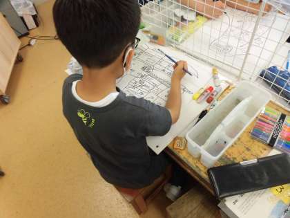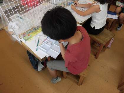 子どもたちは紙いっぱいに大きく絵を描くことに気を付けて取り組んでいました。