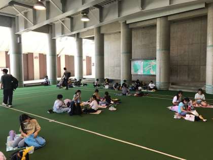 予想よりかなり暑いので、屋根付き広場でお弁当です。感謝していただきましょう、という挨拶がありました。