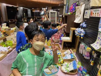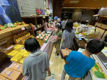 おみやげタイムです。みんな真剣に選んでます。きっとすてきなおみやげがそれぞれのお家に届くと思います。楽しかった川場移動教室のみやげ話と共に。
