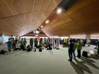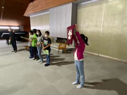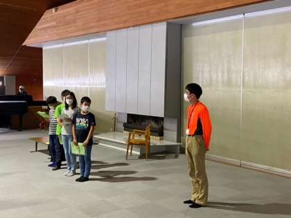 閉室式です。2日間お世話になったふじやまビレジの方々に感謝を伝えました。これから村巡りに出発です。雨はほとんど上がりました。