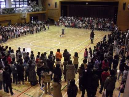 12月8日(木)朝、音楽集会で1年生の発表がありました。