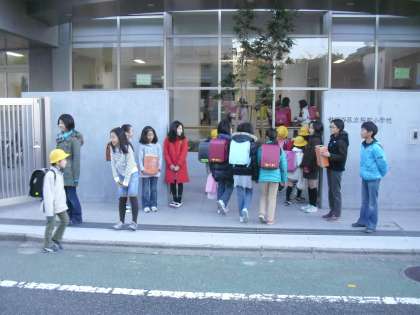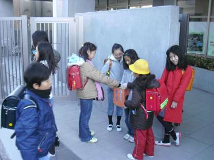 朝の登校時、正門と東門に代表児童が立ち、挨拶と募金を集める活動をしています。