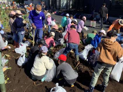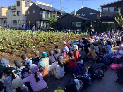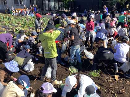 桜町小学校近くの秋山農園でさといも掘りをしました。