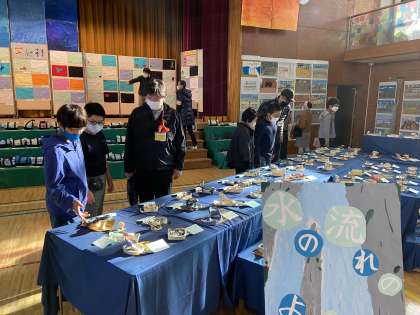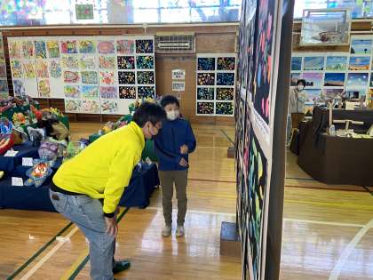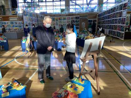 担当している学年の作品について参観に来てくださったお客様に説明します。