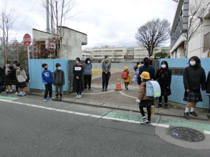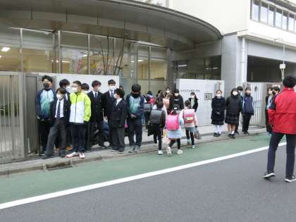 正門と青門にぞれぞれ深沢中の生徒の皆さんが来て、笑顔で挨拶をしてくれました。