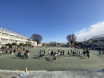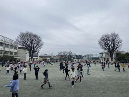休み時間になると、子どもたちは校庭に出て、音楽と共に一斉に走り出します。楽しそうに校庭を駆け回ったり、一生懸命短縄を跳んだりしている子どもたちの笑顔は、何よりも勝る元気の活力源です!