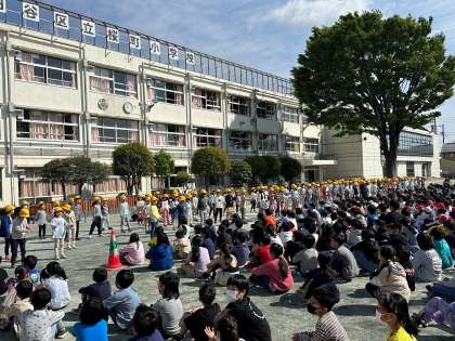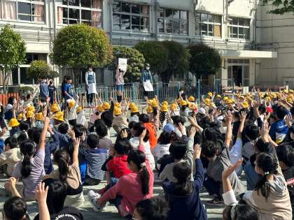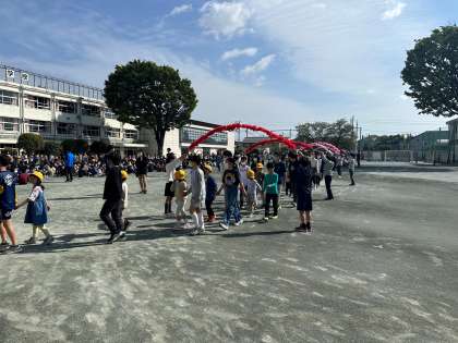 上学年児童の大きな拍手に迎えられ、6年生と一緒に入場した1年生。出し物では、短い期間でしたが頑張って練習したダンスを披露してくれました。