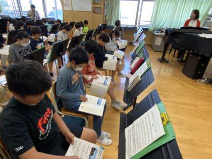 2つの旋律の重なりに気が付き、子どもたちは意識を高くもって学んでいます。
