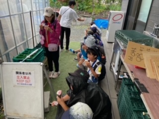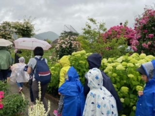 大石公園に行きました。行きは曇っていましたが、ソフトクリームを食べる頃雨が降ってきたので雨に濡れないところで食べました。花がとてもきれいな公園です。バラが美しく咲いていました。