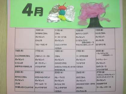 献立表の上部分の装飾は、わかくさ学級の皆さんが作成してくれました。