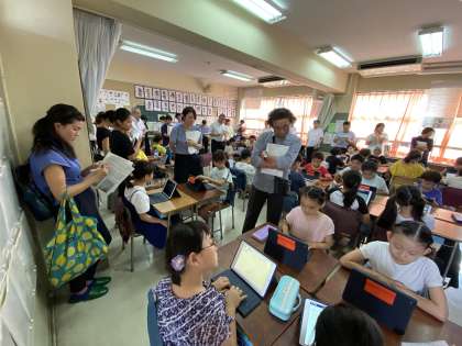 世田谷区中の小学校からたくさんの先生があつまり研究しました。