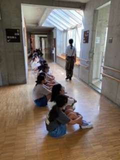 宿舎に入りました。各部屋の確認後、避難訓練を行いました。皆真剣な表情で臨みました。