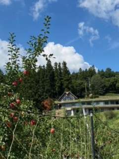 鱒つかみ体験をしました。行く途中りんごの木がたくさんありました。
