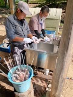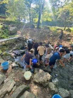 みなキャーキャーと歓声をあげなから鱒つかみを楽しみました。とれた鱒は、夕食でいただきます。