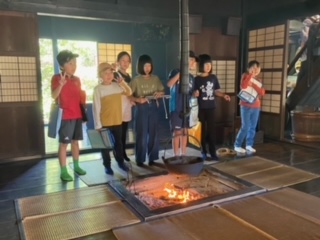 お家の中も見学できます。囲炉裏には火が焚かれています。