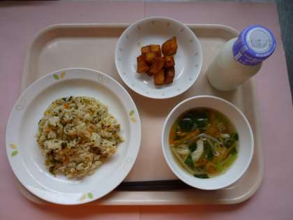 【献立】中華おこわ 牛乳 キャベツと卵のスープ 野菜の中華風味