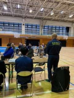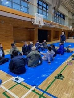 学校・町会・商店街・学校関係者評価委員・学校運営委員・行政・遊び場開放・おやじの会の皆さんが参加して、実際に防災無線機を操作をしたりブルーシートを敷いてみたり、防災訓練を実施しました。
