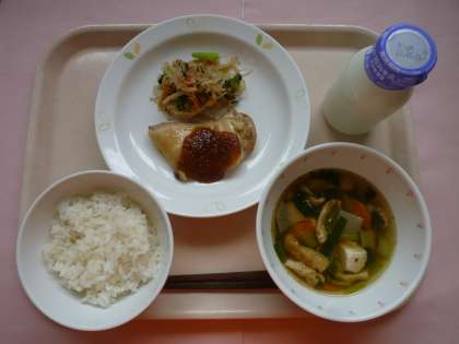 昨日(5/7)の給食の画像です。鶏肉のバーベキューソースはしっかり