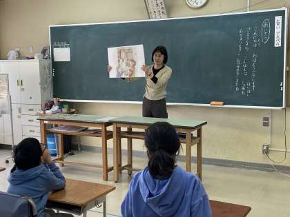 子どもたちは登場人物の気持ちを考えながら、自分たちでも実際にあいさつをして、どんな気持ちになるか発表しました。