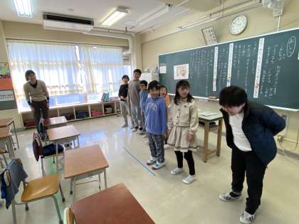 「挨拶の大切さを知り、誰に対しても真心をもって挨拶しようとする態度を養う」ことがねらいです。