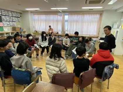 車座になって、真剣に考え話し合う子どもたち。
