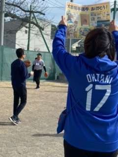子ども見守り隊で本校児童の祖父、福田崇さんが昼休みに来校。大谷グローブを使用して、子どもたちに、キャッチボールやゴロやワンバウンド捕球等の指導をしていただきました。