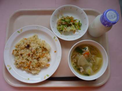 【献立】きんぴらチャーハン 牛乳 ワンタンスープ