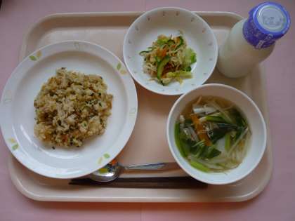 昨日(5/14)の給食の画像です。食物繊維を豊富に含むごぼうが入った